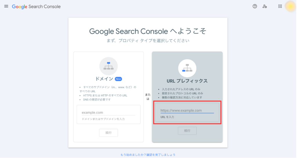 💡 最初から「ドメインプロパティ」で登録すると、ドメイン変更時に再登録が必要になるため、現時点では「URLプレフィックス」で登録するのがベスト!