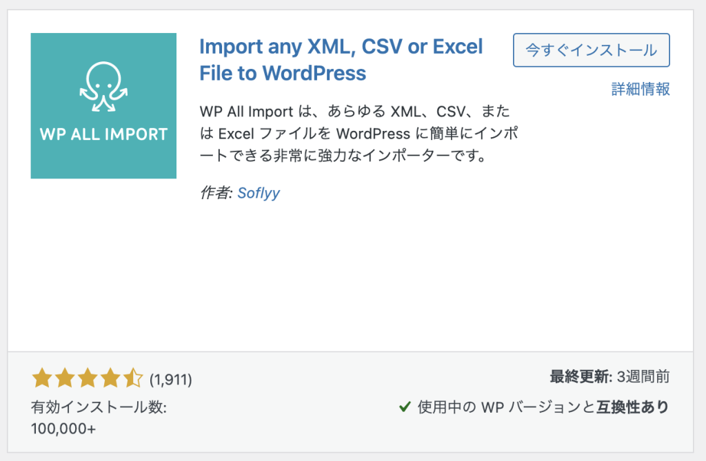 WP All Exportは無料版でも十分に活用できます。まずは、プラグインをインストールしましょう。